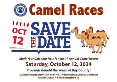 Our 2017 race proceeds went to the "Boys and Girls Club", Great Lakes Bay Region, Bay County. Our 2018 race proceeds went towards "Play City" at Vets Park (Formerly Riverview Discovery Island Project) in Bay City, and the proceeds from the 2019 races were donated to "River Jordan, Inc", a Youth Transitional Home for teens in Bay County. Our 2020 race was postponed due to Covid. 2021 and 2022 races were held at the LFA Hall, 2323 Amelith Rd, Bay City, Michigan with great success, and all net proceeds went to benefit the children of "Bay County". $7000 of 2023 net proceeds went to the Santa House in Bay City. The 2023 race was held at the Kawkawlin Township Hall, , as will our 2024 and 2025 races. The net proceeds of the 2024 7th Annual Camel Race went once again to the Santa House of Bay City, This event is licensed under Michigan State Lottery laws.
